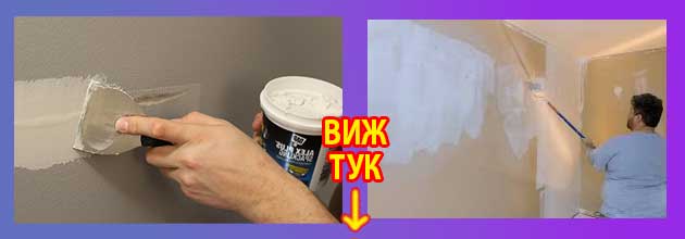 - Обработват се пукнатини и дефекти (запълват се с разтвор, изсъхват, шлифоват се и се почистват от праха);