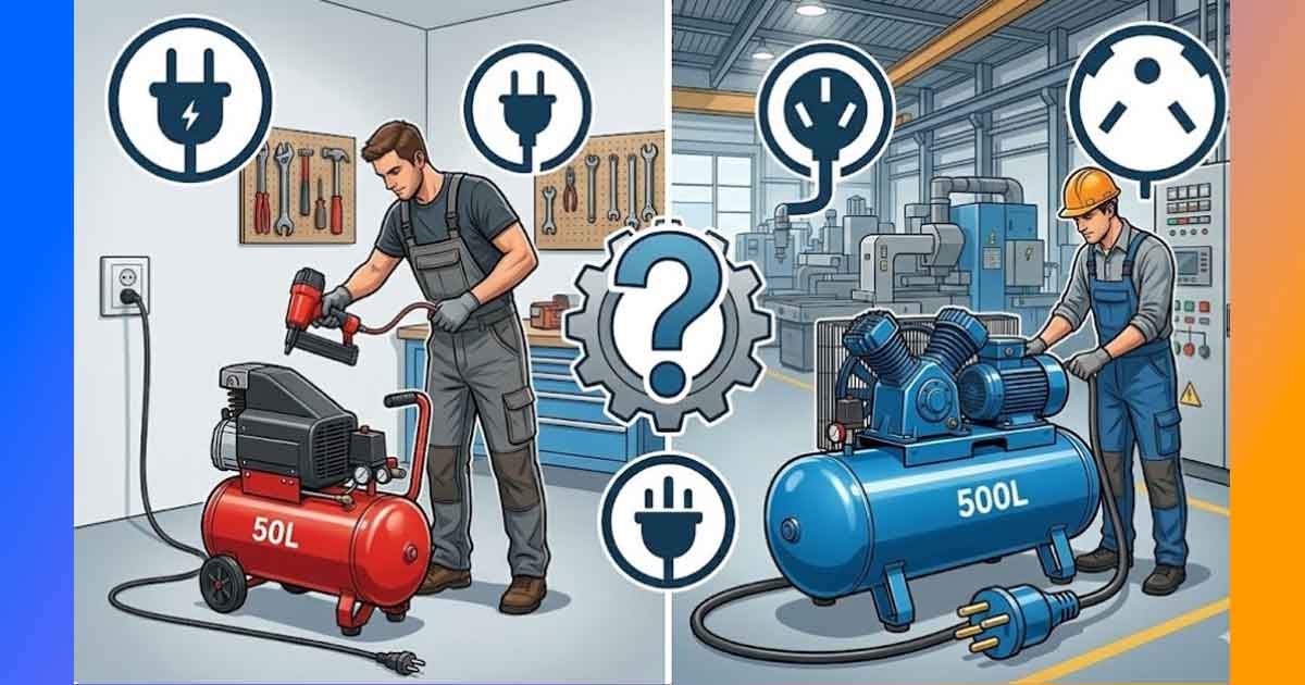 Изборът на нов компресор често започва с въпроса: „Колко литра е бутилката?“. Истината обаче е, че сърцето на машината е нейният двигател, а типът на захранването може да бъде разликата между ефективната работа и постоянното изключване на предпазителите. Когато разглеждате професионални бутални компресори, решението между монофазен (220V) и трифазен (380V) модел трябва да бъде продиктувано не само от наличното електричество, но и от интензивността на работа.